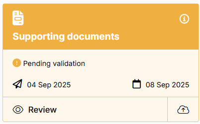 If your check appears as 'pending validation', as can be seen by the supporting document box below, you will always need to manually review these yourself. To do this click 'review' and you will then be able to update the result to a 'pass' or 'fail'. Similar to overriding a result, you will always be asked to provide a comment.